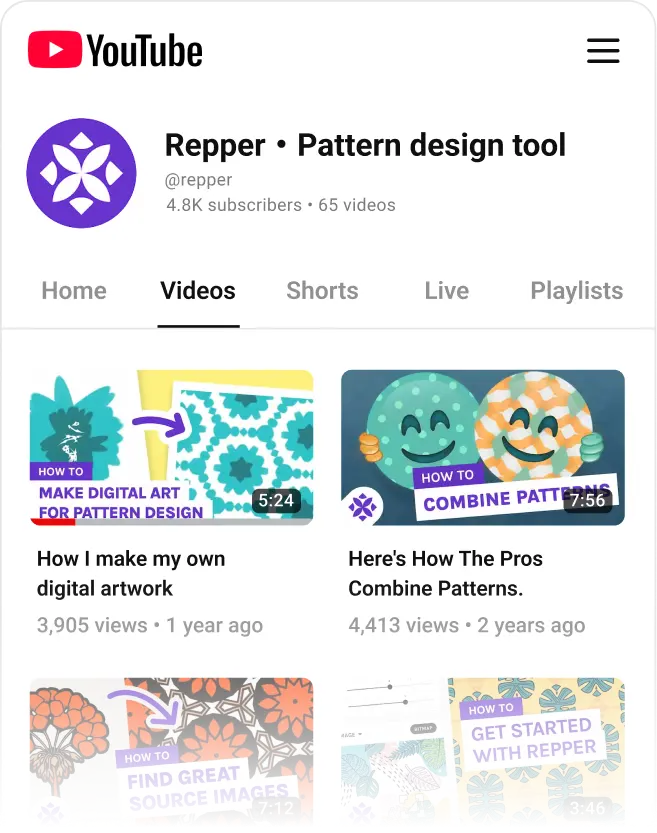 Visit channelRead about surface pattern design, learn new techniques, or explore what you can do with Repper. Each guide is written so you can try things as you read.